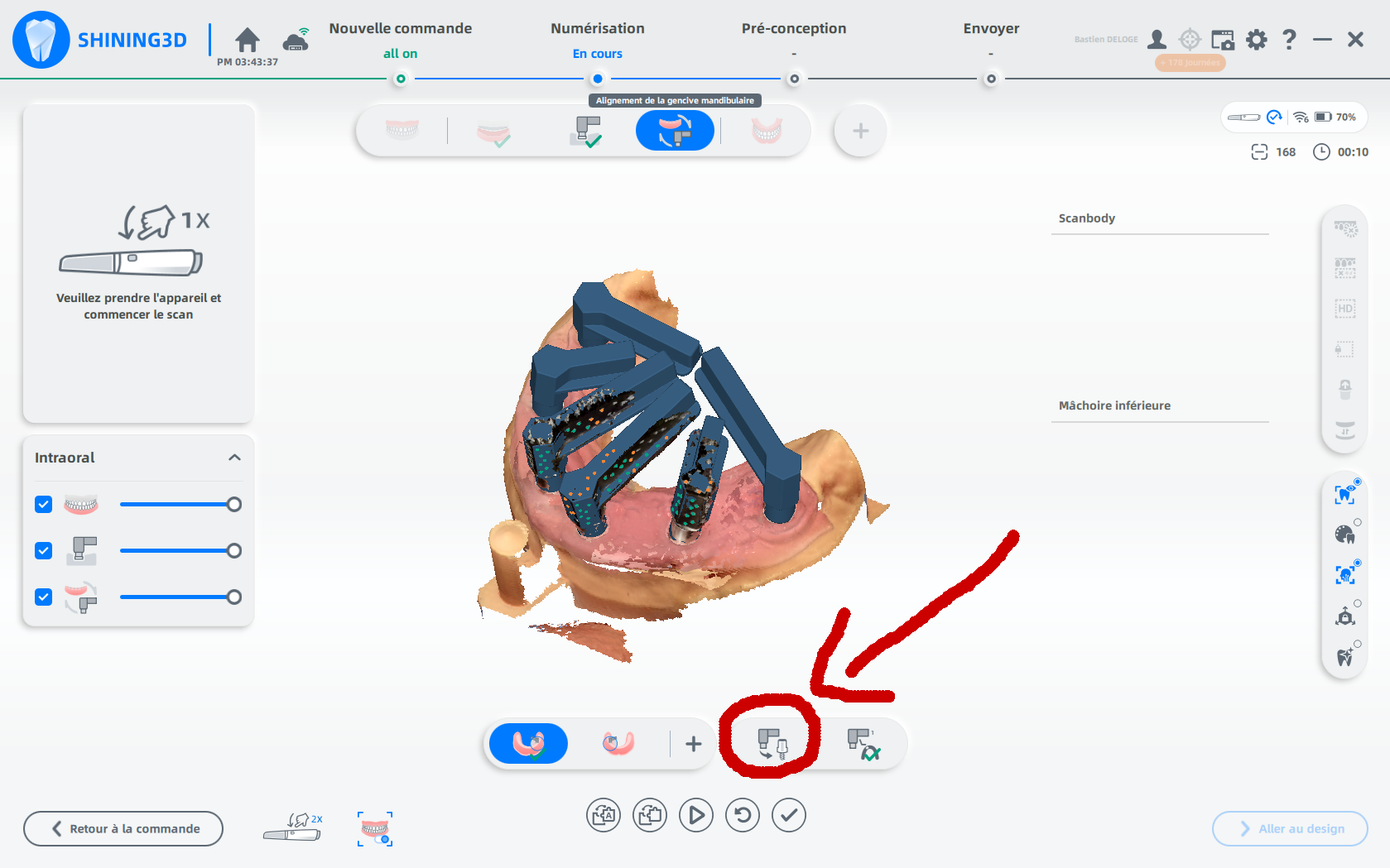 Apres avoir aligné les marqueurs sur la gencive dans la partie scan, il faut cliquer sur le bouton Conversion :