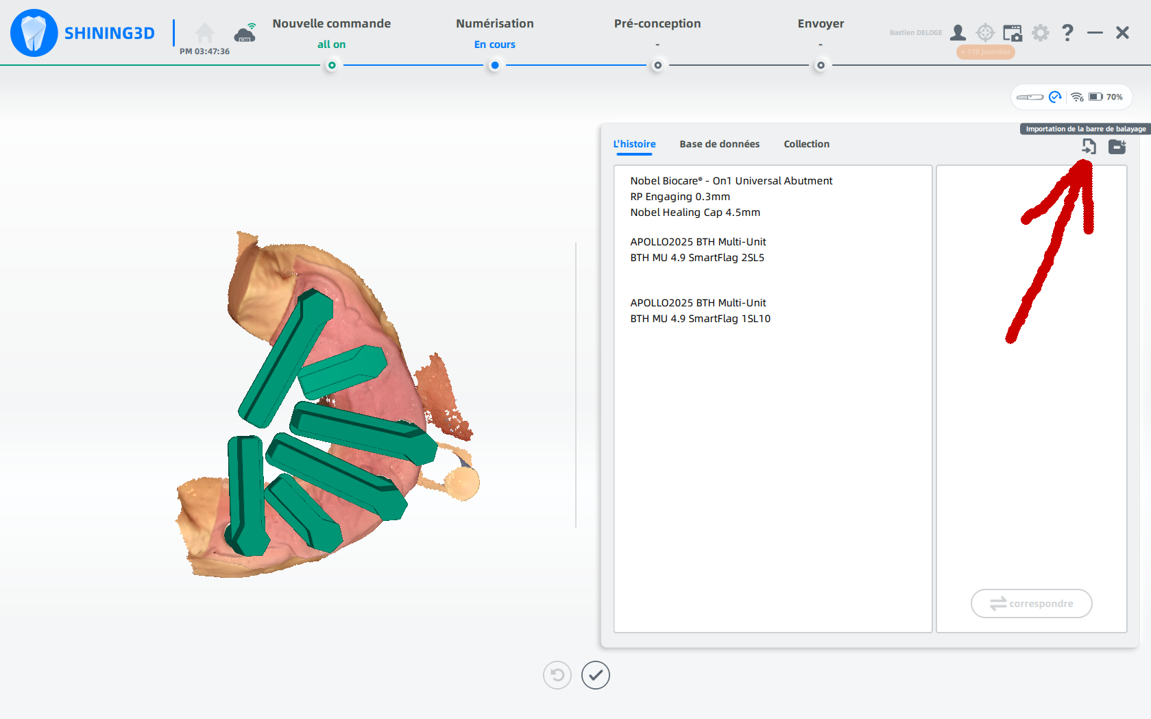 Afin de convertir les marqueurs IPG en scanbodies utilisables par le labo, il faut, si la bibliothèque nécessaire n'est pas disponible dans le logiciel SHINING3D, l importer.